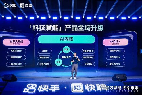 持續(xù)加碼智能化 鑄造全域雙引擎 不僅是“311”計(jì)劃,快聘2024年也在持續(xù)發(fā)力AI,通過(guò)AI能力內(nèi)核進(jìn)行產(chǎn)品創(chuàng)新,全面賦能商家。一方面,快聘利用快手大模型搭建了AI智能機(jī)器人,實(shí)現(xiàn)智能的功能對(duì)話、求職意向的精準(zhǔn)過(guò)濾、多場(chǎng)景的留資。另一方面,快聘推出的數(shù)字人直播,實(shí)現(xiàn)高真實(shí)感的建模、音視頻的同步以及實(shí)時(shí)的問(wèn)答與互動(dòng)。