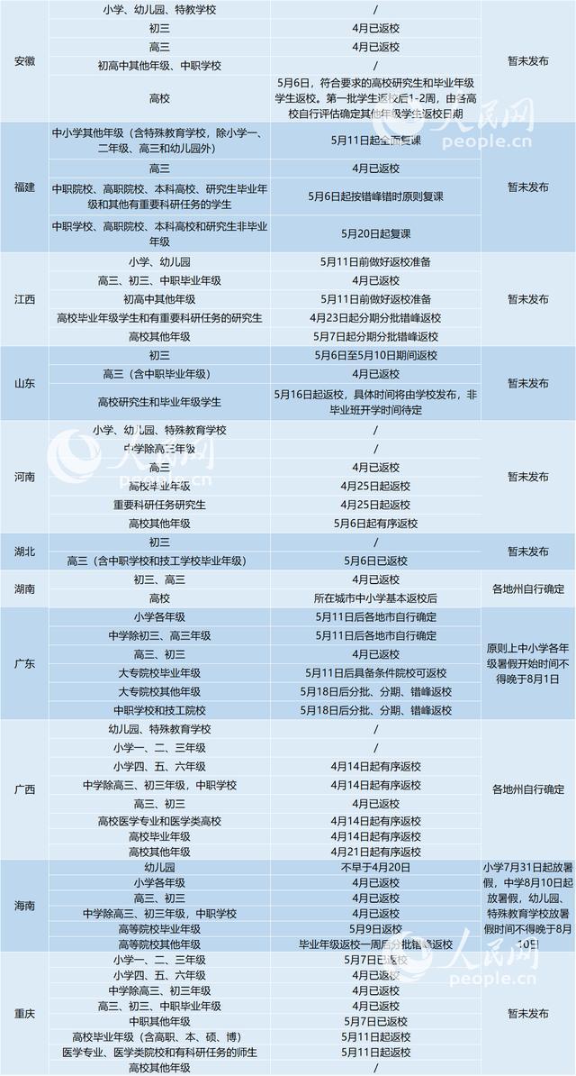 各省區(qū)市各級(jí)各類(lèi)學(xué)校返校時(shí)間表一覽