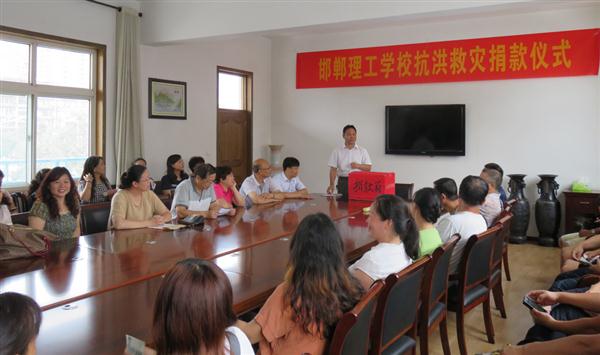 7月份一場暴雨洗卷了整個(gè)河北,邯鄲地區(qū)也是受災(zāi)嚴(yán)重,從各方傳來的水災(zāi)信息,讓大家意識(shí)到,這場暴雨來勢洶洶。8月1日上午10時(shí),邯鄲理工學(xué)校會(huì)議室舉行了“抗洪救災(zāi)獻(xiàn)愛心捐款儀式”。這是我校積極響應(yīng)市教育局關(guān)于抗洪救災(zāi)工作部署,迅速掀起爭為災(zāi)區(qū)學(xué)校獻(xiàn)愛心活動(dòng)的一個(gè)縮影。