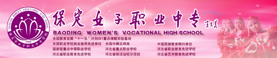 保定市女子職業(yè)中專學(xué)校于1985年建校,是經(jīng)河北省教育廳批準(zhǔn)的國辦女子職業(yè)中專學(xué)校,國家級(jí)重點(diǎn)中等職業(yè)學(xué)校,全國職業(yè)指導(dǎo)工作先進(jìn)學(xué)校。 作為保定市窗口單位,學(xué)校先后接待美國、加拿大、韓國、日本等四十多國家和地區(qū)的代表團(tuán)來訪。學(xué)校于2003年取得了招收外國留學(xué)生資格,面向世界開放辦學(xué),與俄羅斯民族藝術(shù)學(xué)院、澳大利亞TAFE學(xué)院達(dá)成了聯(lián)合辦學(xué)意向;與日本米子市商業(yè)高等專科學(xué)校、新西蘭璜家雷女子高中結(jié)為姊妹學(xué)校;與荷蘭阿爾貝達(dá)學(xué)院簽定聯(lián)合辦學(xué)協(xié)議,互派留學(xué)生。2007年2月,學(xué)校派遣留學(xué)生到荷蘭訪問學(xué)習(xí),2008年10月,第一批荷蘭留學(xué)生來校訪問交流。2009年5月,..