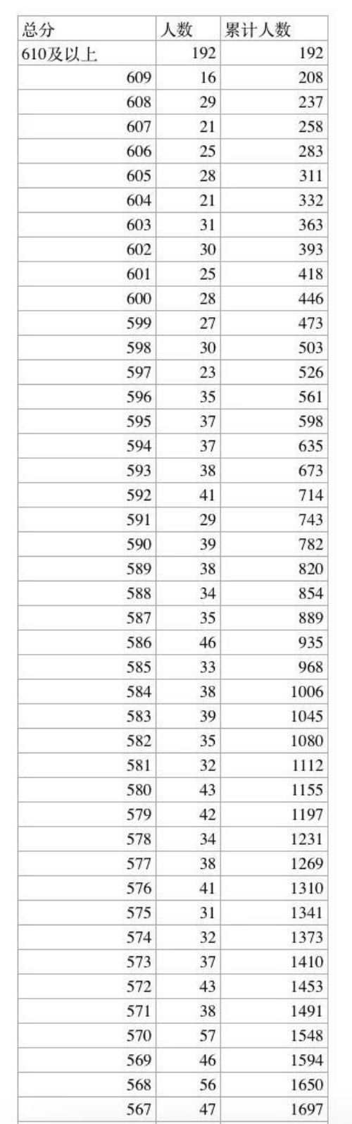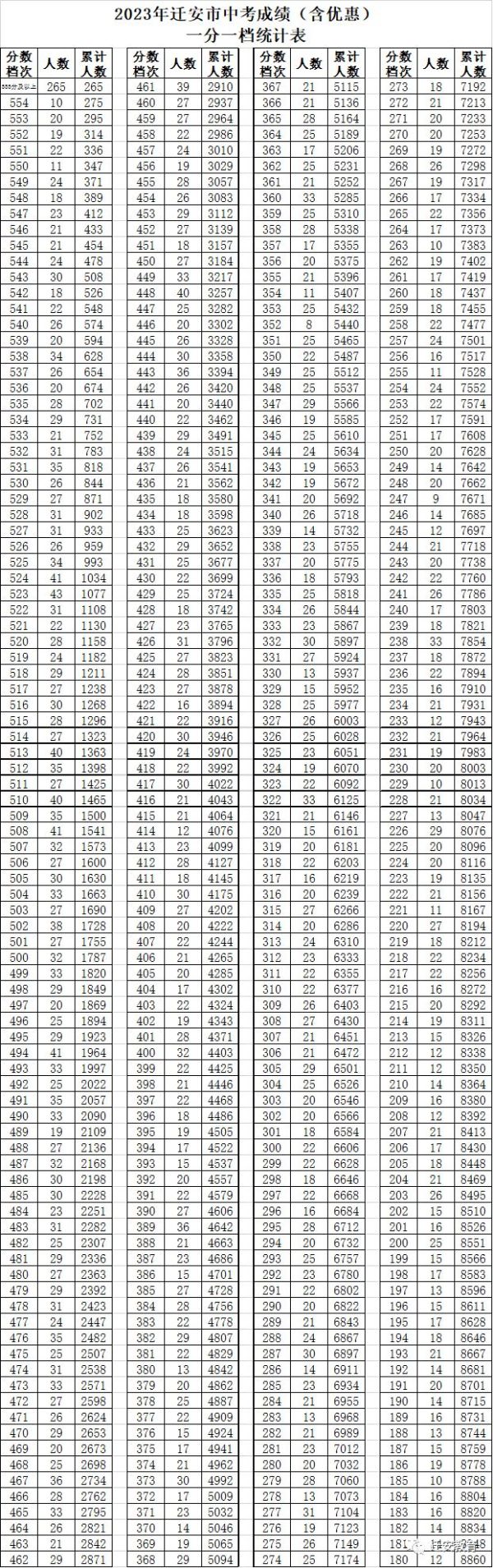 2023年中考一分一檔表出爐! 點(diǎn)擊下方圖片放大查看