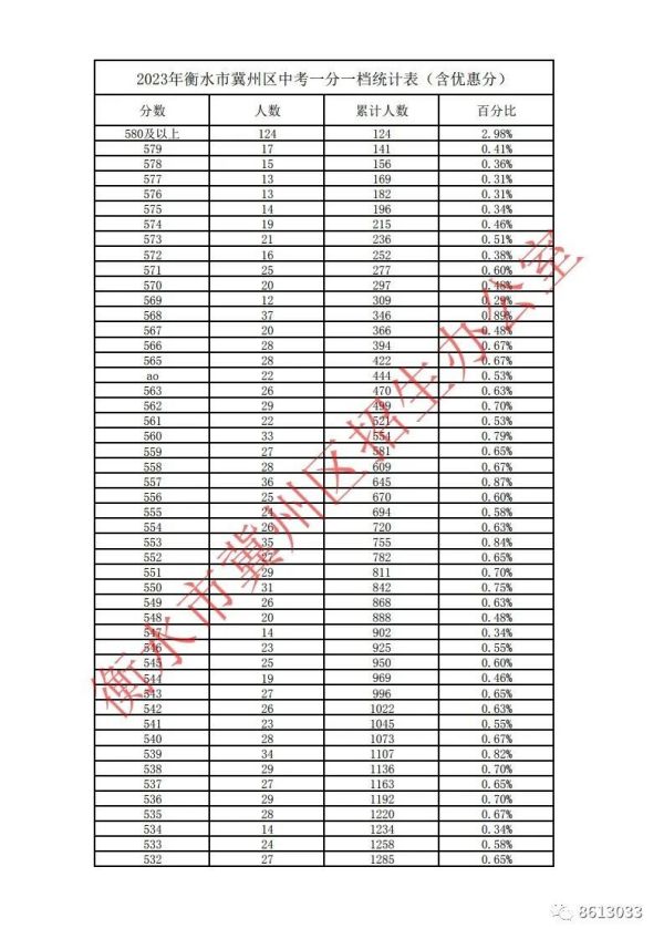 • 2023年衡水市冀州區(qū)中考一分一檔統(tǒng)計(jì)表(含優(yōu)惠分)