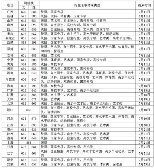 2018北京師范大學各省錄取分數(shù)線