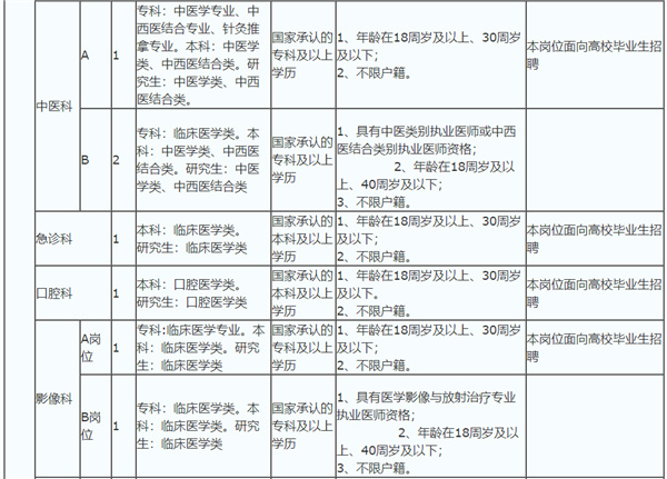 招聘崗位所需的具體條件詳見《2021年鹽山縣壽甫中醫(yī)醫(yī)院公開招聘事業(yè)單位工作人員崗位信息表》(附件1)。留學(xué)回國人員和其他海外、外國學(xué)歷學(xué)位獲得者的專業(yè)名稱與招聘崗位要求專業(yè)名稱不完全一致,但所學(xué)專業(yè)課程與招聘崗位專業(yè)課程大部分相同,且符合該崗位所需要的其他條件的,也可報(bào)考該招聘崗位。
