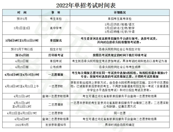 2022年單招考試時間表